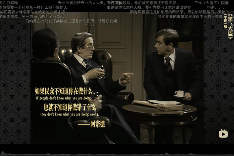 《是,大臣》是由西德尼·洛特比、彼得·惠特莫尔执导,乔纳森·林恩、安东尼·杰伊编剧,保罗·爱丁顿、奈杰尔·霍桑、德里克·福德斯领衔主演的政治题材情景喜剧。于1980年2月25日起在英国广播公司二台播出。